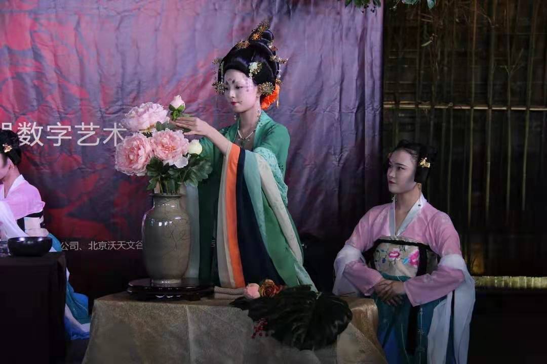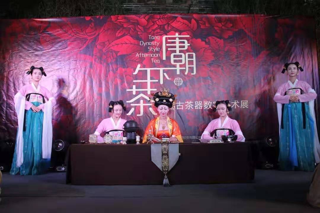 随后,湖南演艺集团倾力打造的唐朝版“中华茶礼”精彩呈现,随后“唐朝下午茶——中国古茶器数字艺术展”在众多嘉宾见证下,缓缓拉开开展大门。