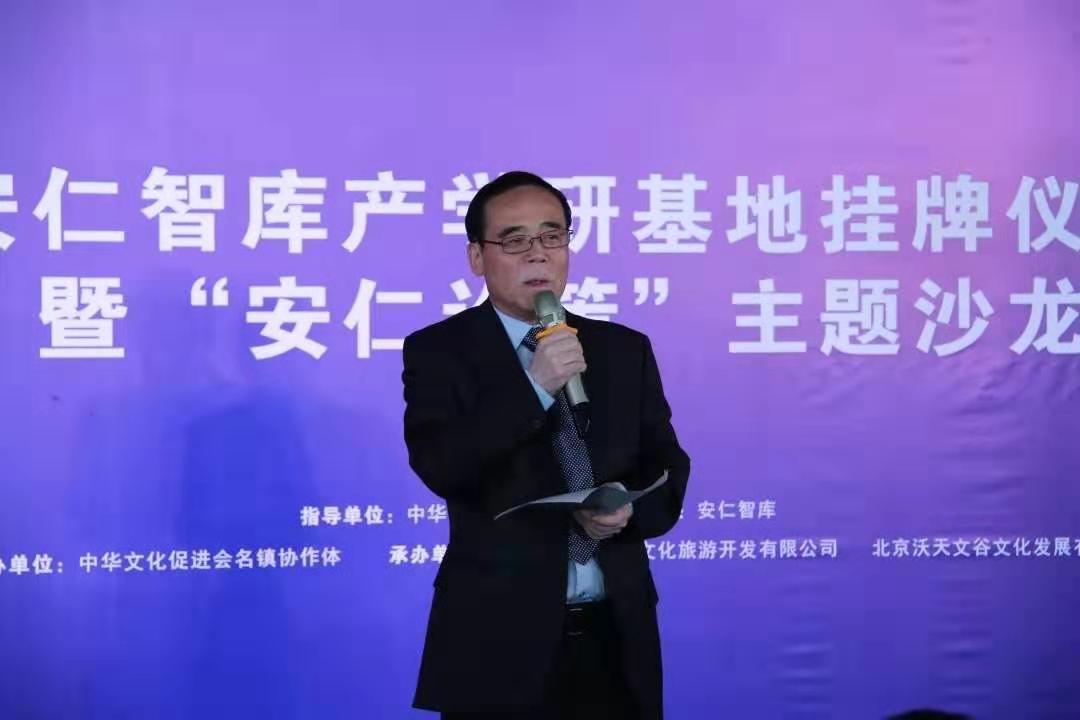安仁智库顾问,中华文化促进会主席王石致辞,他首先祝贺安仁智库产学研基地的挂牌,并强调智库在思想的独立性方面不可替代的重要性。他期望各位学者不变初心,为“新型城镇化建设”的发展提供强劲的力量。