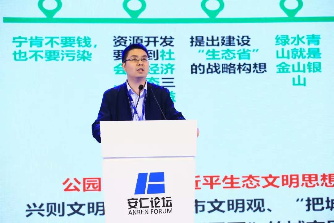 成都市规划设计研究院总规划师杨潇以习近平总书记在成都提出的建设美丽宜居公园城市的课题发表主题演讲,并通过综合数据为公园城市的建立发展提出意见。
