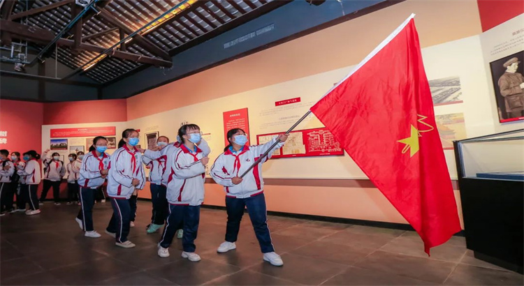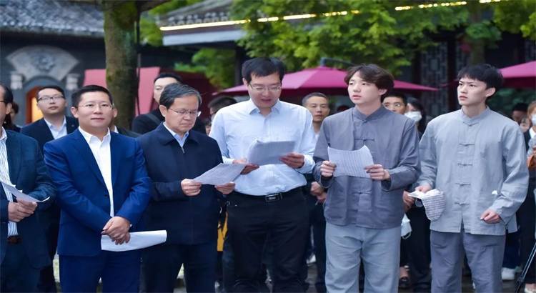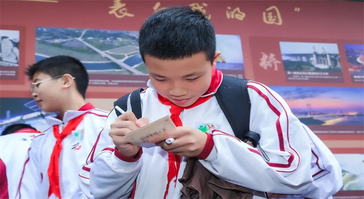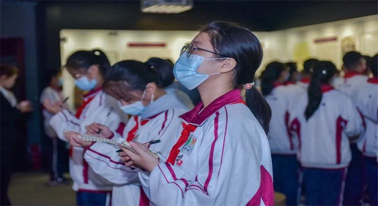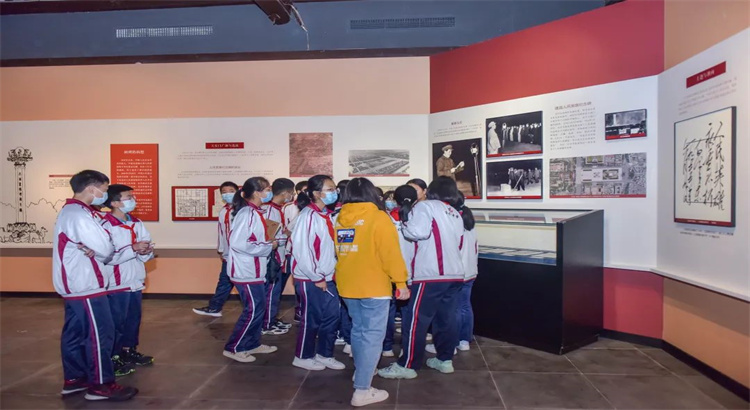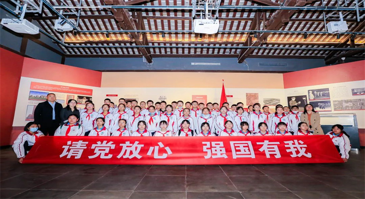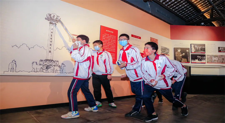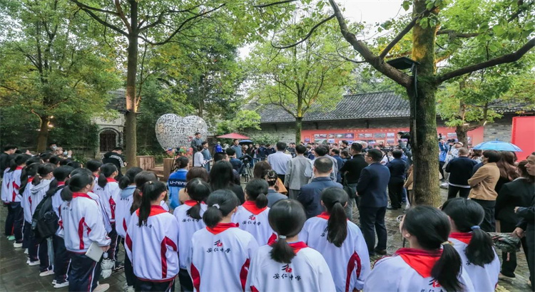 开渠文化艺术中心的年轻艺术团队用短幕剧的形式为现场嘉宾再现了人民英雄纪念碑浮雕上五四运动那段激荡历史、唤醒民族的动人场景。随后,来自宏文学校成都安仁校区初中部的学生以小小讲解员的身份带领嘉宾观展。