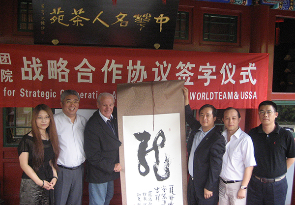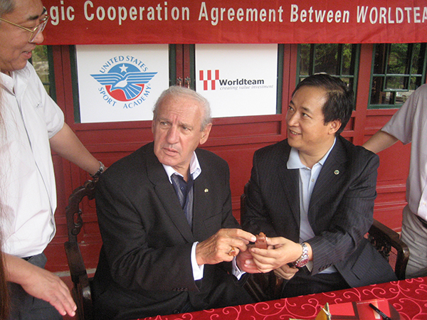 2007年6月19日,美国体育学院(United States Sports Academy)与中国沃天体育管理集团 (China Worldteam Sports Management Group) 在中华名人茶苑签署战略合作协议。签字的双方代表为现任美国体育学院院长Thomas P. Rosandich博士与中国沃天体育管理集团董事长郭杰先生。